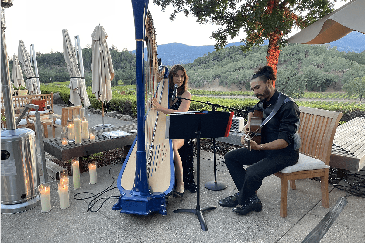 Setting up is part of the experience I manage seamlessly. I coordinate directly with your venue or planner to understand the layout, power access, and ideal positioning. I arrive early to ensure smooth load-in, soundcheck, and setup—so the music begins beautifully and without interruption.